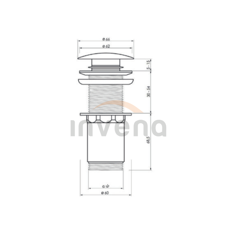 Automatinis vožtuvas praustuvui INVENA CHROME, be perpylimo