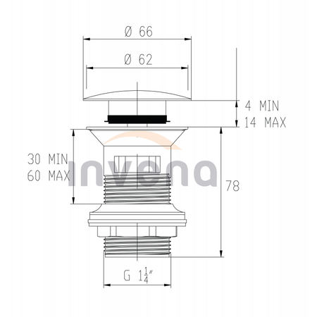 Automatinis vožtuvas praustuvui INVENA CHROME, su perpylimu
