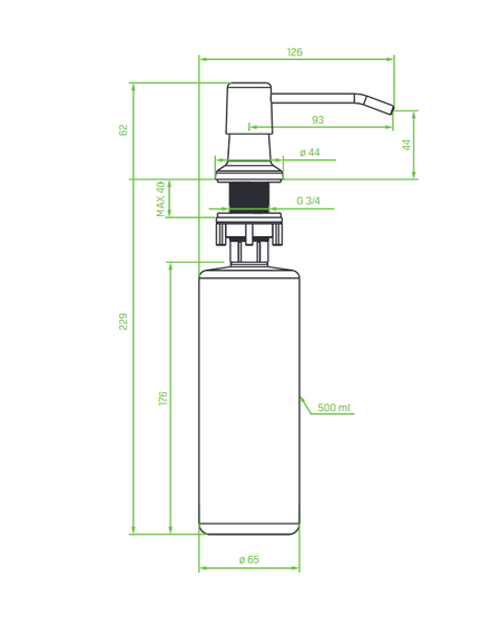 Į plautuvę ar stalviršį montuojamas dozatorius yra puikus pasirinkimas naudojant indų ploviklį ar skystą muilą. Dozatorius yra praktiškas bet kurios virtuvės priedas. Patogus papildymas padidina naudojimosi komfortą.