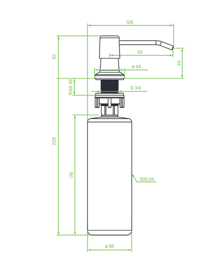 Į plautuvę ar stalviršį montuojamas dozatorius yra puikus pasirinkimas naudojant indų ploviklį ar skystą muilą. Dozatorius yra praktiškas bet kurios virtuvės priedas. Patogus papildymas padidina naudojimosi komfortą.