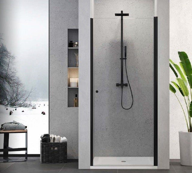 Naujos madingos „Superia Black“ dušo durys, 80 cm