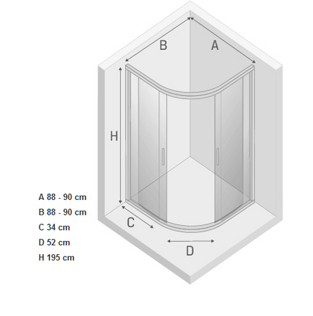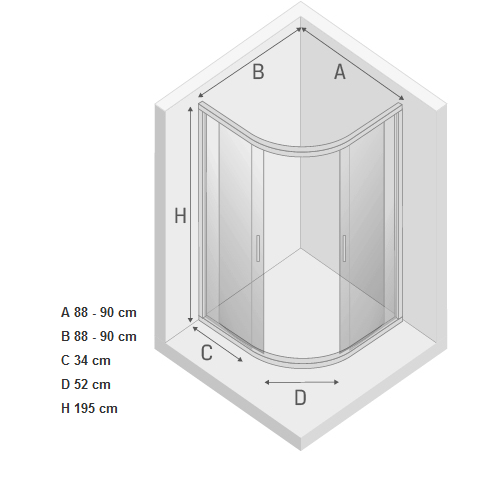 Apvali dušo kabina NEW PRACTIC 90x90cm