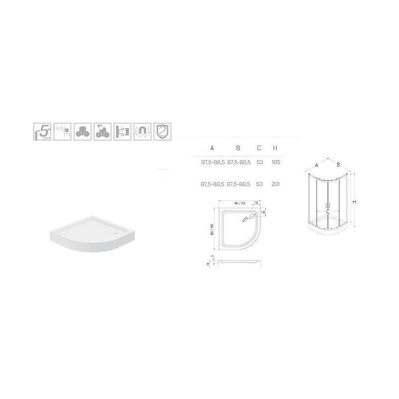 Dušo kabina SUVIA R55 80x80x185+PADĖKLAS 16cm+SIFONAS