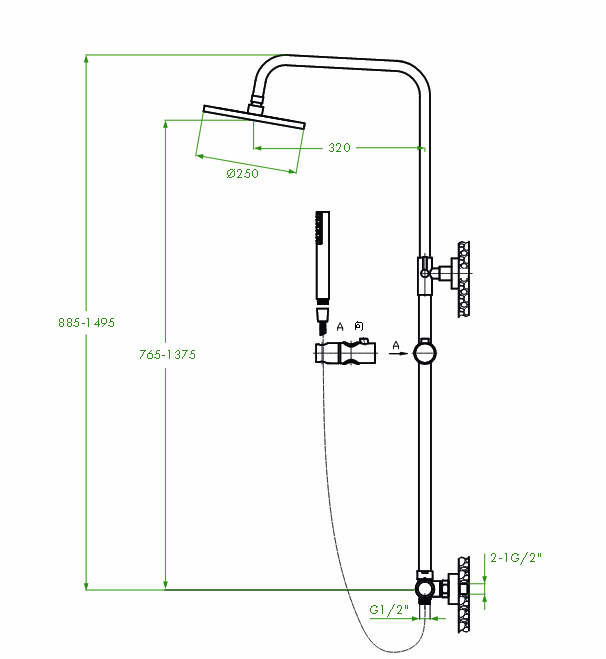 - Reguliuojamas dušo galvutės laikiklio aukštis