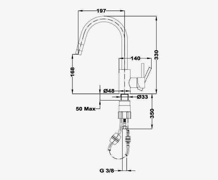 - Su ištraukiamu, vienos funkcijos, antikalkiniu dušeliu