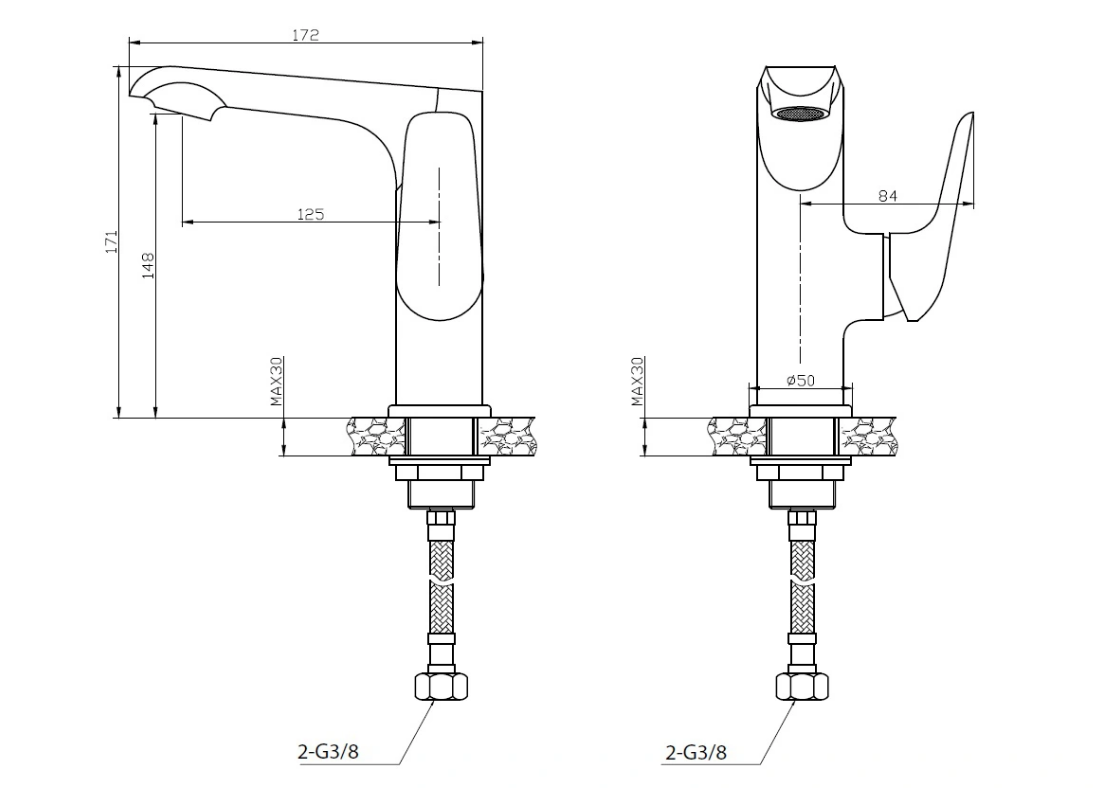 LAVEO ALEA 100 W/CH - svirtinis vandens maišytuvas praustuvui