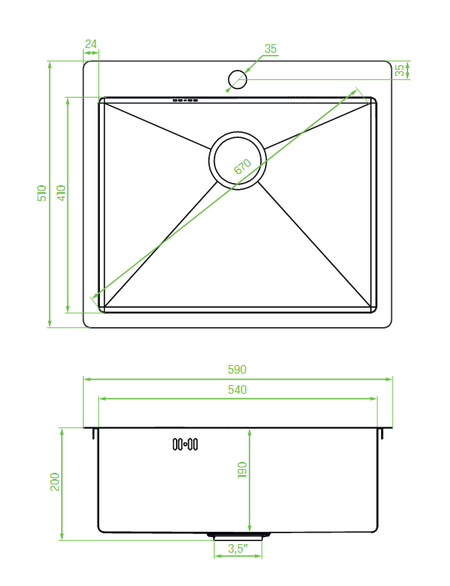 LAVEO MARMARA 1B GOLD - įleidžiama nerūdijančio plieno plautuvė, padengta titanu