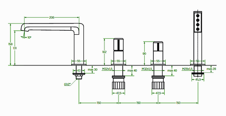 Maišytuvas ant vonios krašto LAVEO PETO 203/4 B