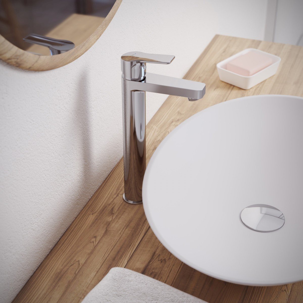 TEKA COR 105 – modernus, paaukštintas, svirtinis praustuvo maišytuvas, lietu čiaupu , padengtas atsparia chromo danga, montuojamas stalviršyje, šalia kriauklės. Unikalaus, TEKA dizaino, patogus naudojimui, šiuolaikiškas ir stilingas maišytuvas suteikia Jūsų vonios kambariui nepakartojamą žavesį.