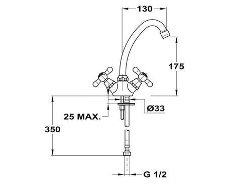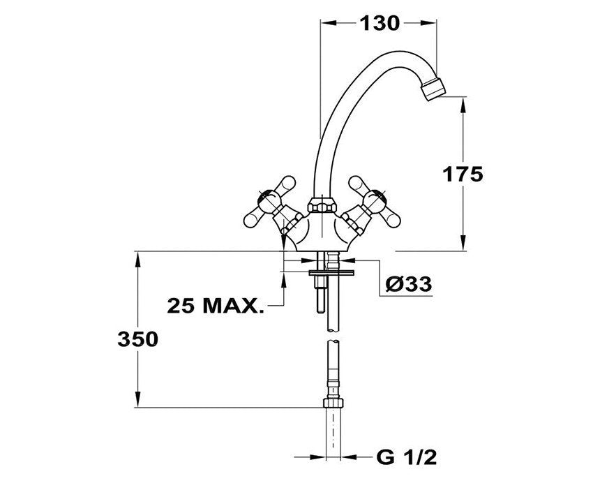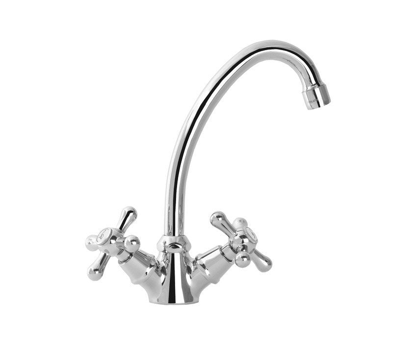 TEKA MTRE 110 - dviejų rankenėlių praustuvo maišytuvas, lenktu čiaupu, padengtas atsparia chromo danga.