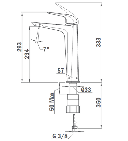 TEKA TAKA 105 G – modernus, paaukštintas, svirtinis praustuvo maišytuvas.