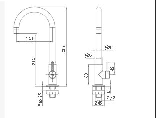 TEKA IN 154 modelis - modernus, svirtinis šalto vandens maišytuvas, padengtas atsparia chromo danga.