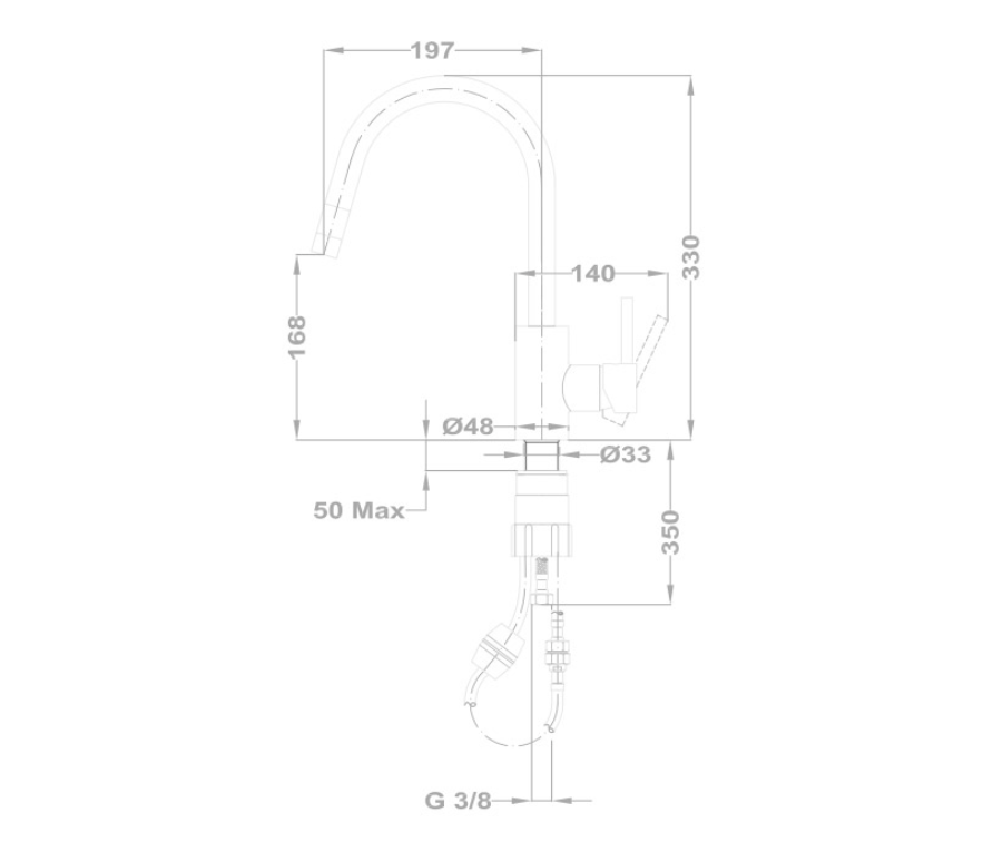 - Su ištraukiamu, vienos funkcijos, antikalkiniu dušeliu