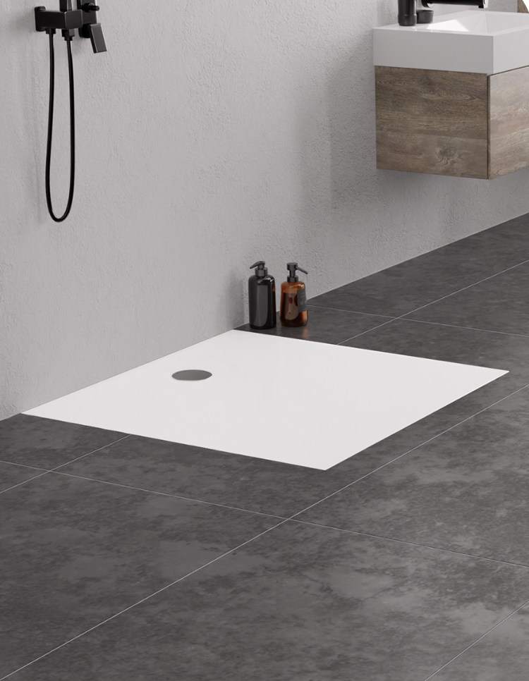Itin plokšti, be krašto dušo padėklai iš Nex kolekcijos.