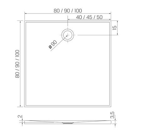 Nex konglomerato dušo padėklas, kvadratinis, baltas, aukštis 3,5 cm