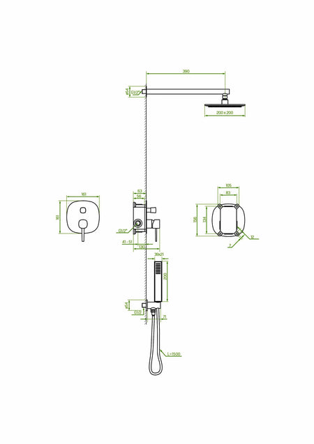 - Stacionarios dušo galvos matmenys: 200x200mm