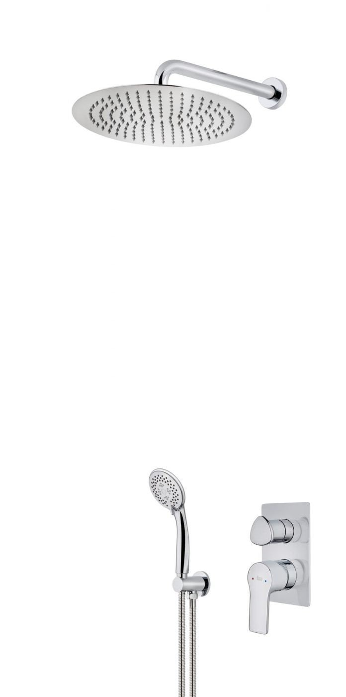 COR COMBO 1 – modernus, potinkinės sistemos rinkinys, su stacionaria dušo galva, dviejų krypčių potinkiniu maišytuvu, dušo komplektu ir potinkine dalimi, padengtas atsparia chromo danga. Combo 1 dušo žarna jungiama prie dušo galvutės laikiklio, montuojamo tiesiogiai prie vandens padavimo sistemos. Maišytuvo potinkinė dalis uždengta ypatingai plona, chromuota, dekoratyvine plokšte. Unikalaus dizaino, šiuolaikiškas ir stilingas, kompaktiškas ir patogus naudojimui dušo komplektas suteikia Jūsų vonios kambariui nepakartojamą žavesį.