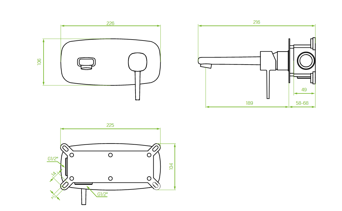 - Čiaupo ilgis: 189mm