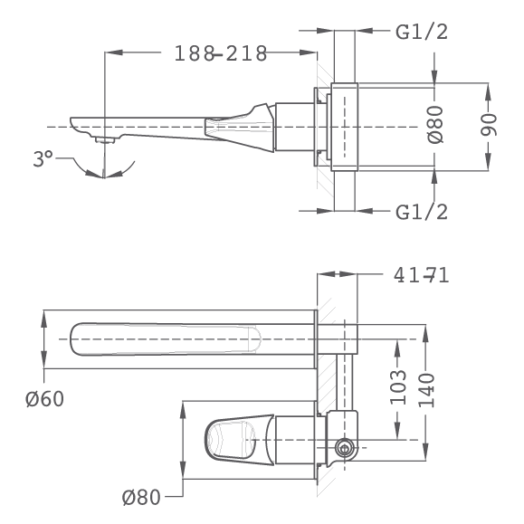 TEKA SEN 301 B - vandens maišytuvas praustuvui, montuojamas sienoje.