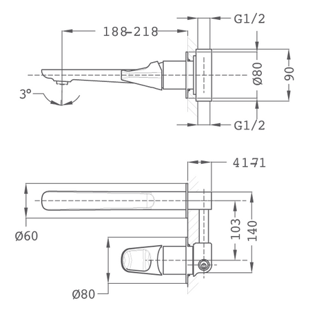TEKA SEN 301 G - vandens maišytuvas praustuvui, montuojamas sienoje.