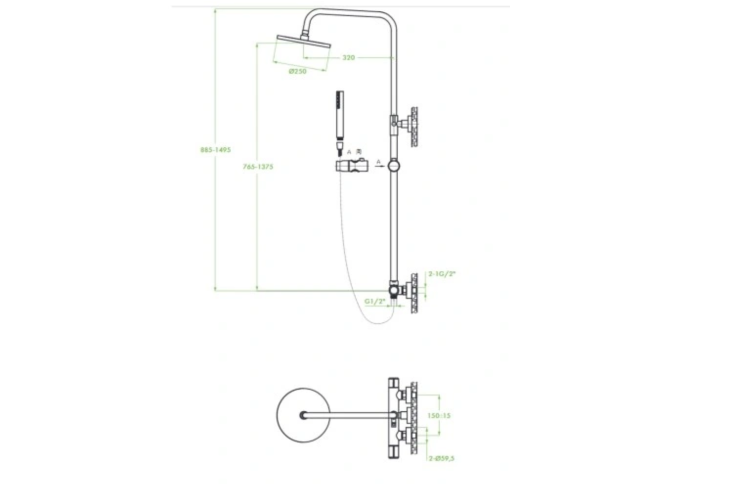 - Viršutinės dušo galvos dydis: Ø250 mm