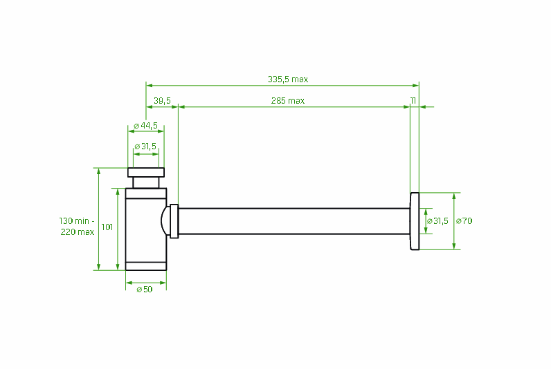 - Montavimo angos skersmuo: 1⅟₄ ”x 32 mm
