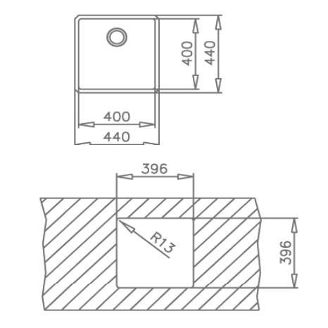 TEKA BE LINEA 400/400 1B GLOSSY - postalviršinė nerūdijančio plieno plautuvė