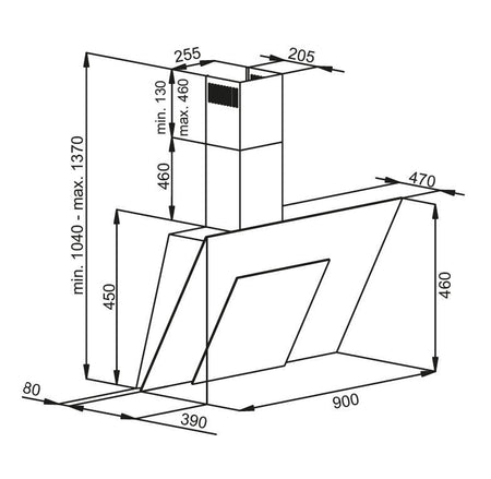 - Matmenys: 900 mm x 460 mm x 470 mm