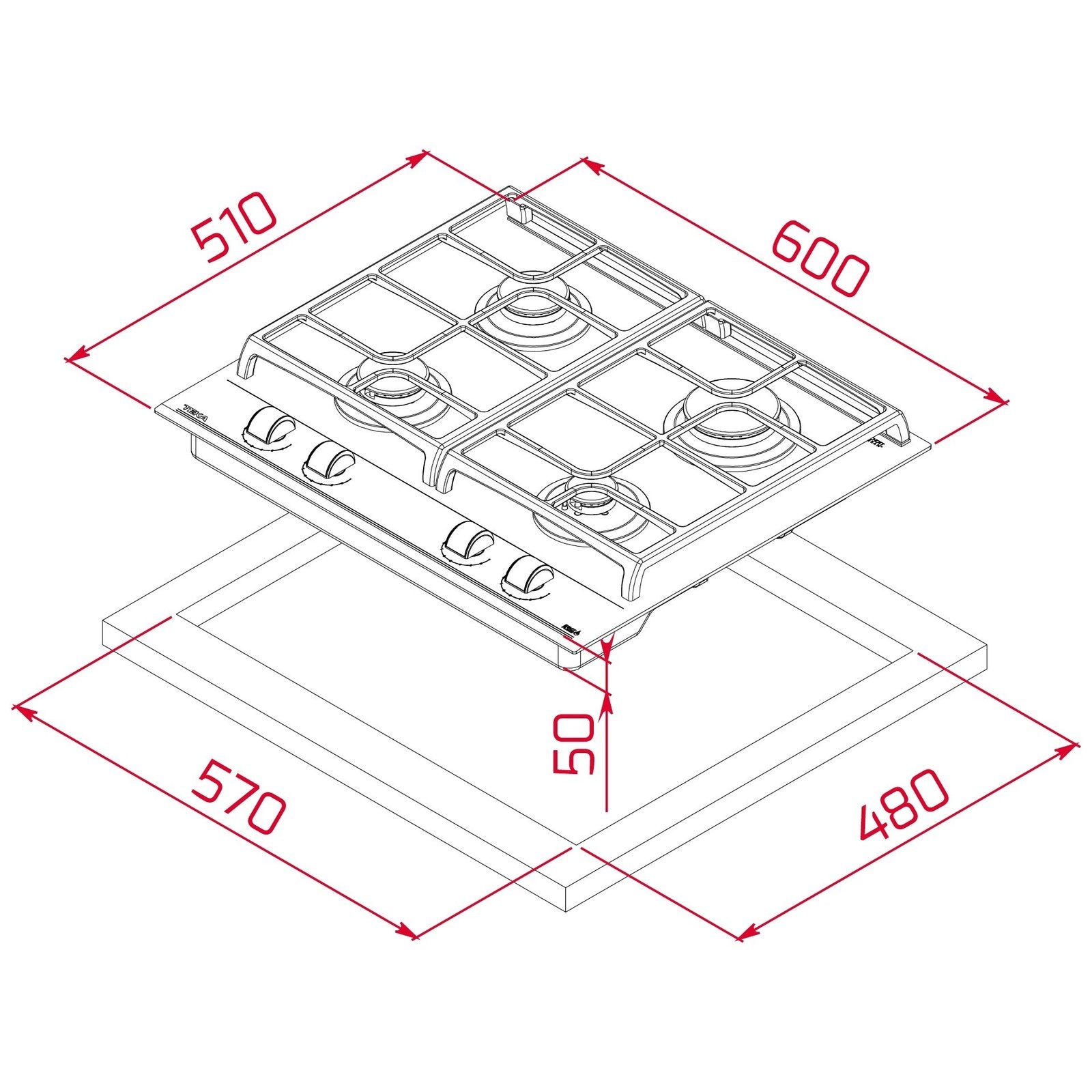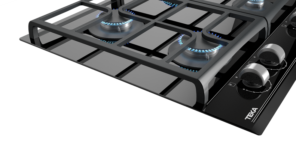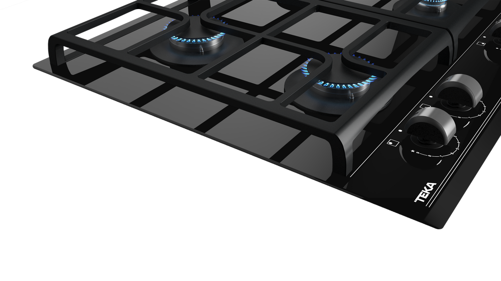 TEKA GZC 64320 – nepriklausoma, juodos spalvos grūdinto stiklo, dujinė kaitlentė.