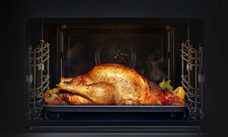 - Orkaitės fasadinis paviršius iš juodo stiklo. Elegantiška nerūdijančio plieno rankena, padengta specialia danga, apsaugančia nuo pirštų antspaudų.