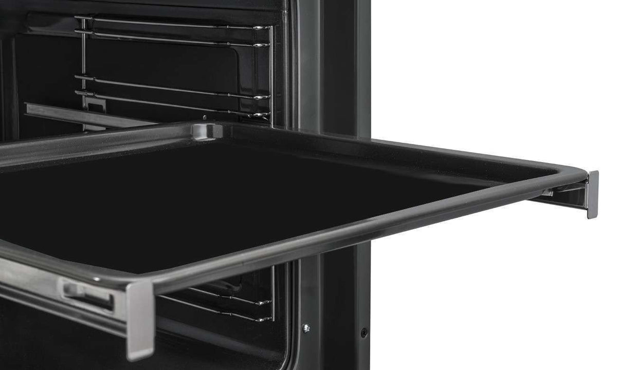 -Orkaitės viduje 5 lygių kepimo skardos laikikliai, 1 lygio teleskopiniai bėgeliai