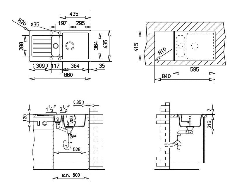 - Komplektacija: plautuvė + sifonas + 3 ½ ekscentrinis ventilis