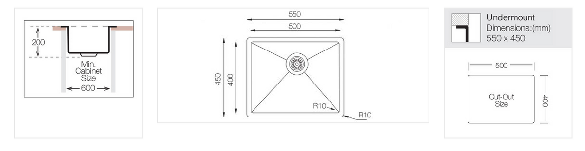 - Dubens išmatavimai: 500x400mm
