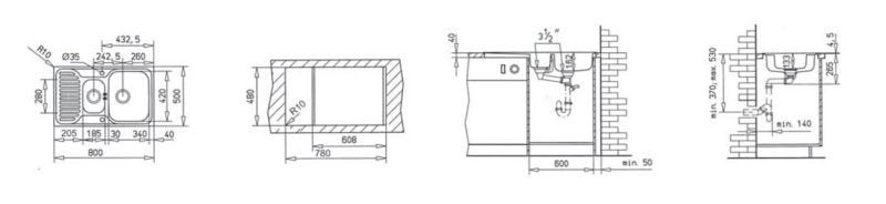 - Dubens matmenys: 1x340x420x162 mm, 1x185x280x133