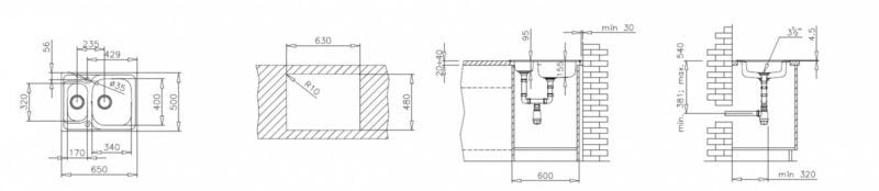 - Dubens matmenys: 1x340x400x155 mm, 1x170x320x95