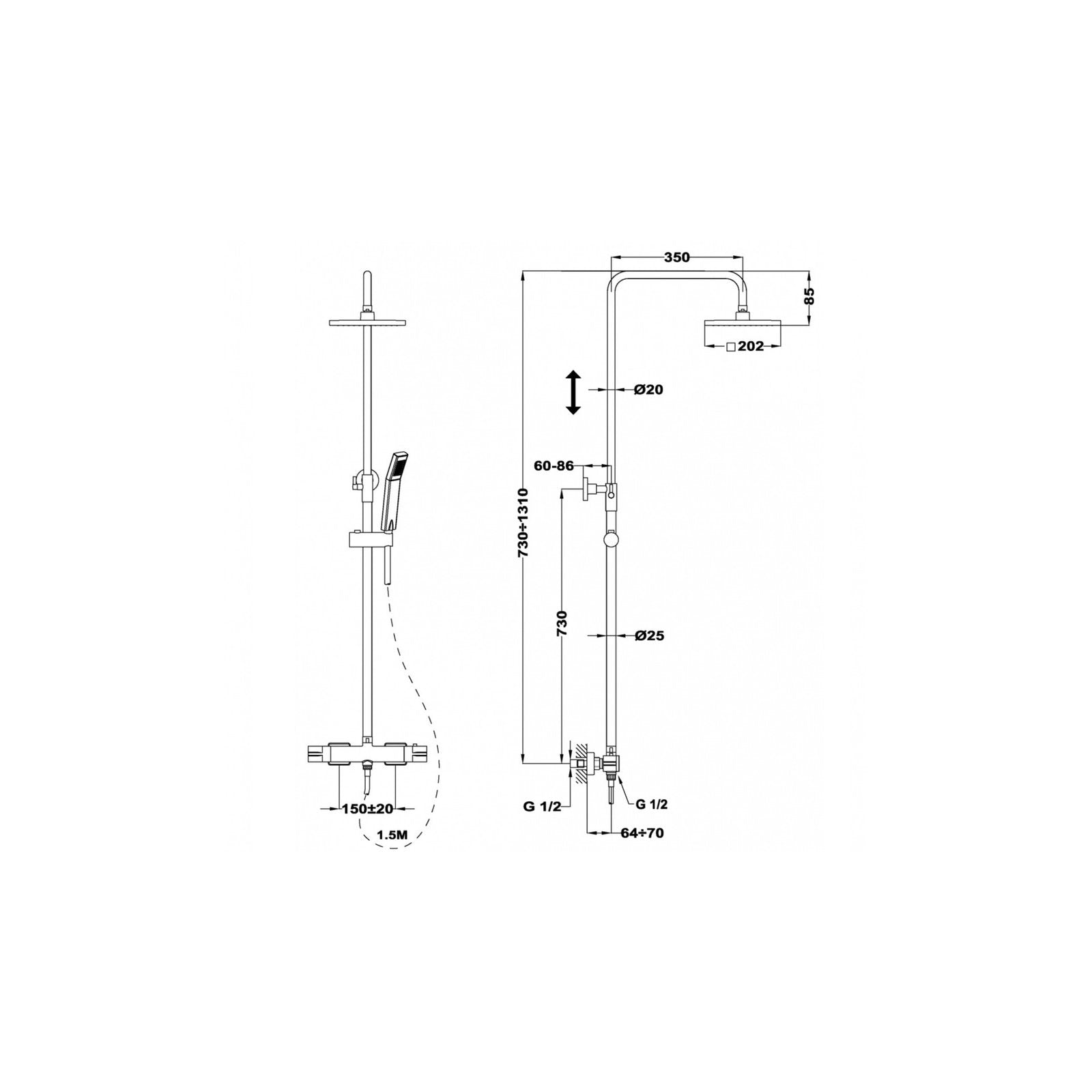 - Apvalus, reguliuojamas teleskopinis dušo galvos laikiklis: