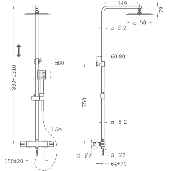 - Apvalus, reguliuojamas teleskopinis dušo galvos laikiklis: