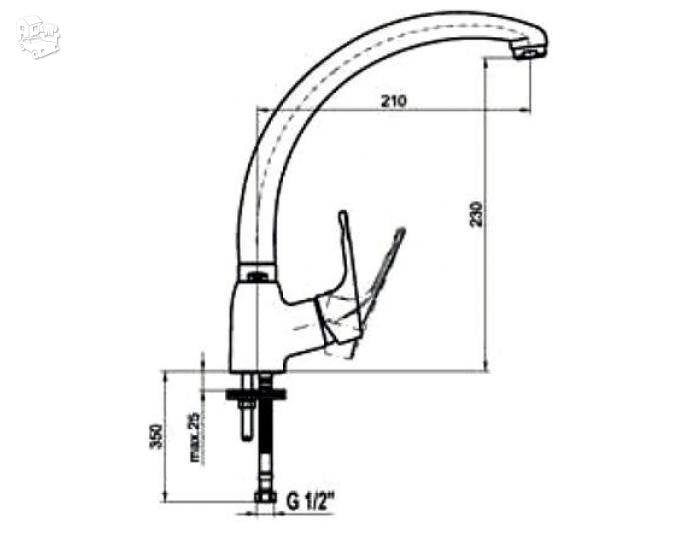 - Aukštas, 210 mm, pasukamas čiaupas
