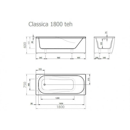 CLASSICA 180 vonios, U formos, baltos spalvos fasadinis skydas, skirtas vonios dubens uždengimui iš trijų pusių: fasadinės, kairės ir dešinės