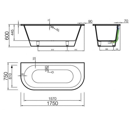 Akmens masės vonia Evento 2 - 1750 mm ilgio, be sifono