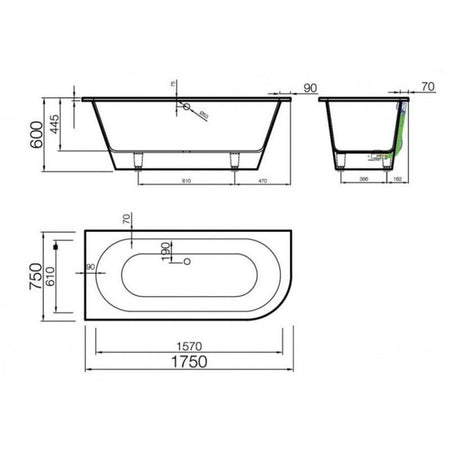 Akmens masės vonia Evento 3 right - 1750 mm ilgio, be sifono