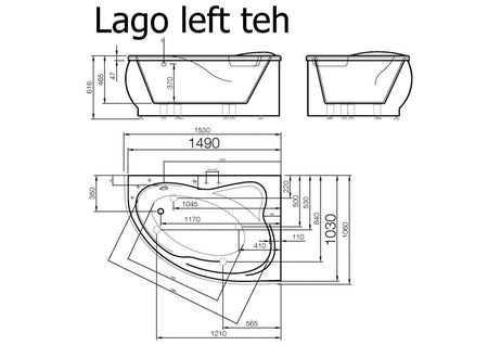 VISPOOL LAGO (left) - baltos spalvos, akmens masės vonia, 1530 mm ilgio, be sifono ir be fasadinio skydo