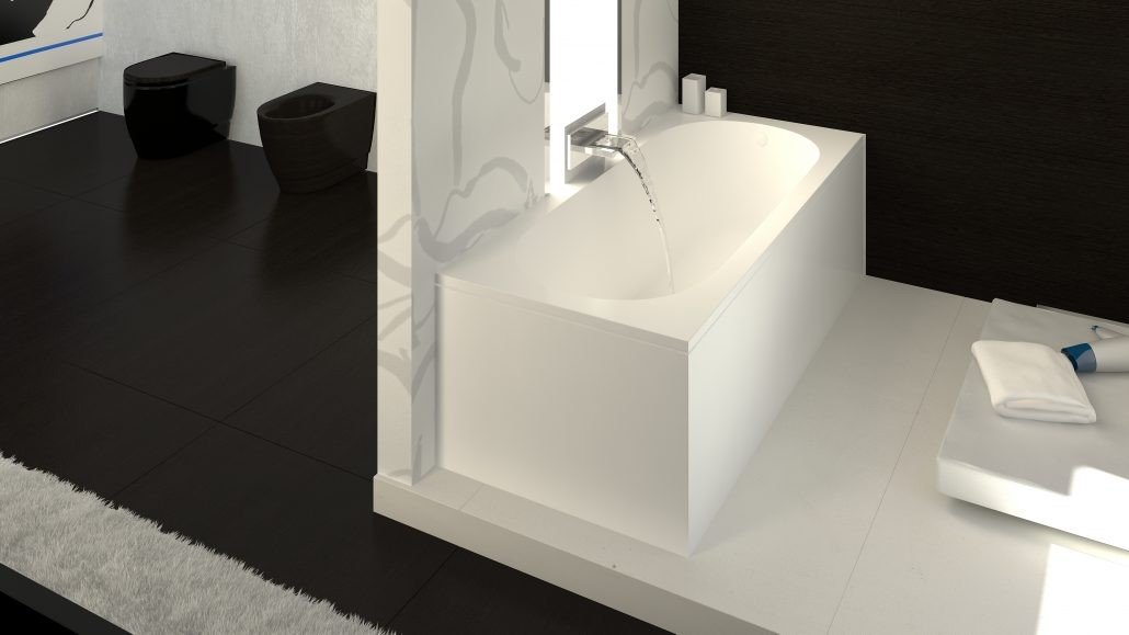 Akmens masės vonia LIBERO 1700 mm ilgio, be sifono ir be fasadinio skydo