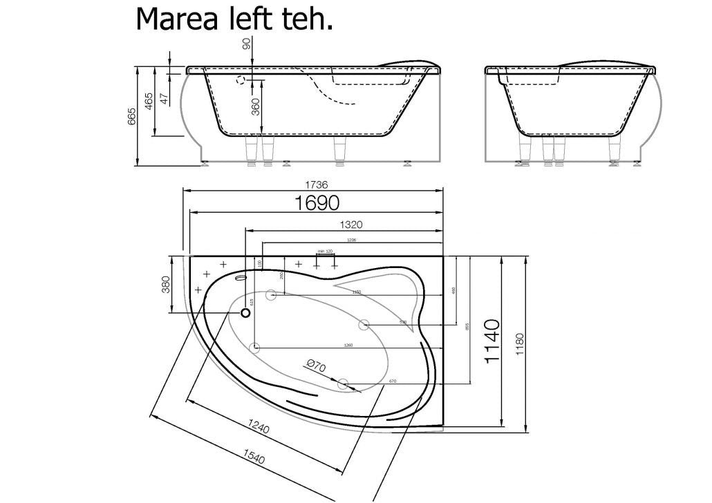 Akmens masės vonia Marea (left), 1736 mm ilgio, be sifono ir be fasadinio skydo