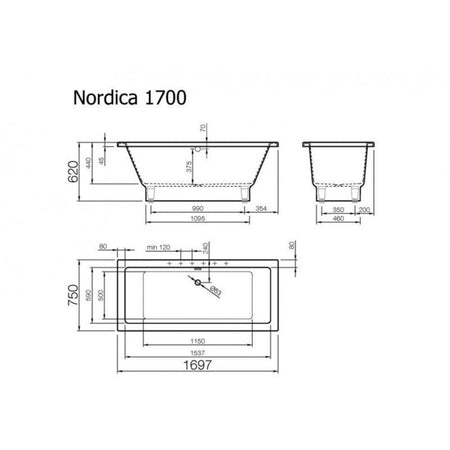 Akmens masės vonia NORDICA 170 - 1700 mm ilgio, be sifono