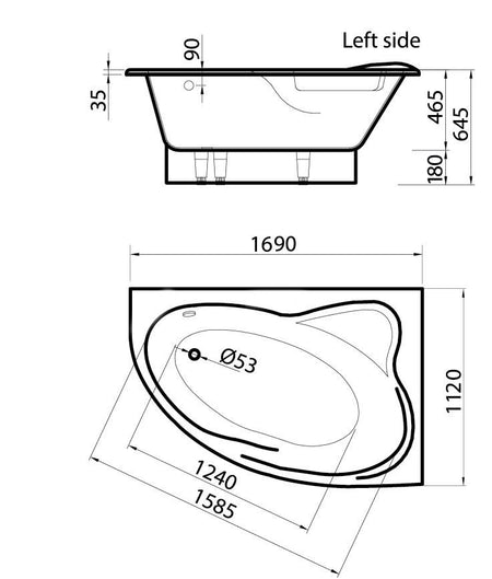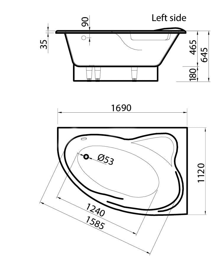 Akmens masės vonia Orte left, 1700 mm ilgio, be sifono
