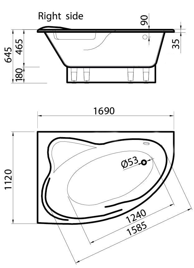 Akmens masės vonia Orte right 1700 mm ilgio, be sifono