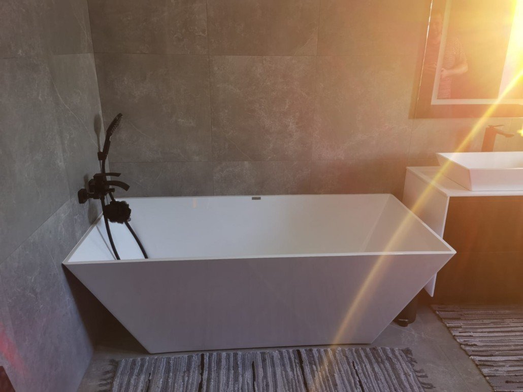 Akmens masės vonia Quadro 175 1752 mm ilgio, su automatiniu sifonu