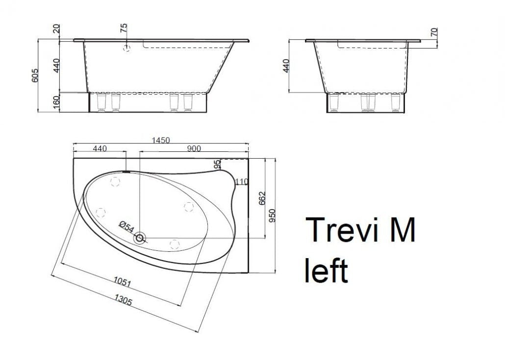 Akmens masės vonia TREVI M LEFT 1450 mm ilgio