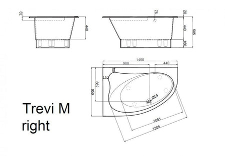 Akmens masės vonia TREVI M RIGHT, 1450 mm ilgio, be sifono